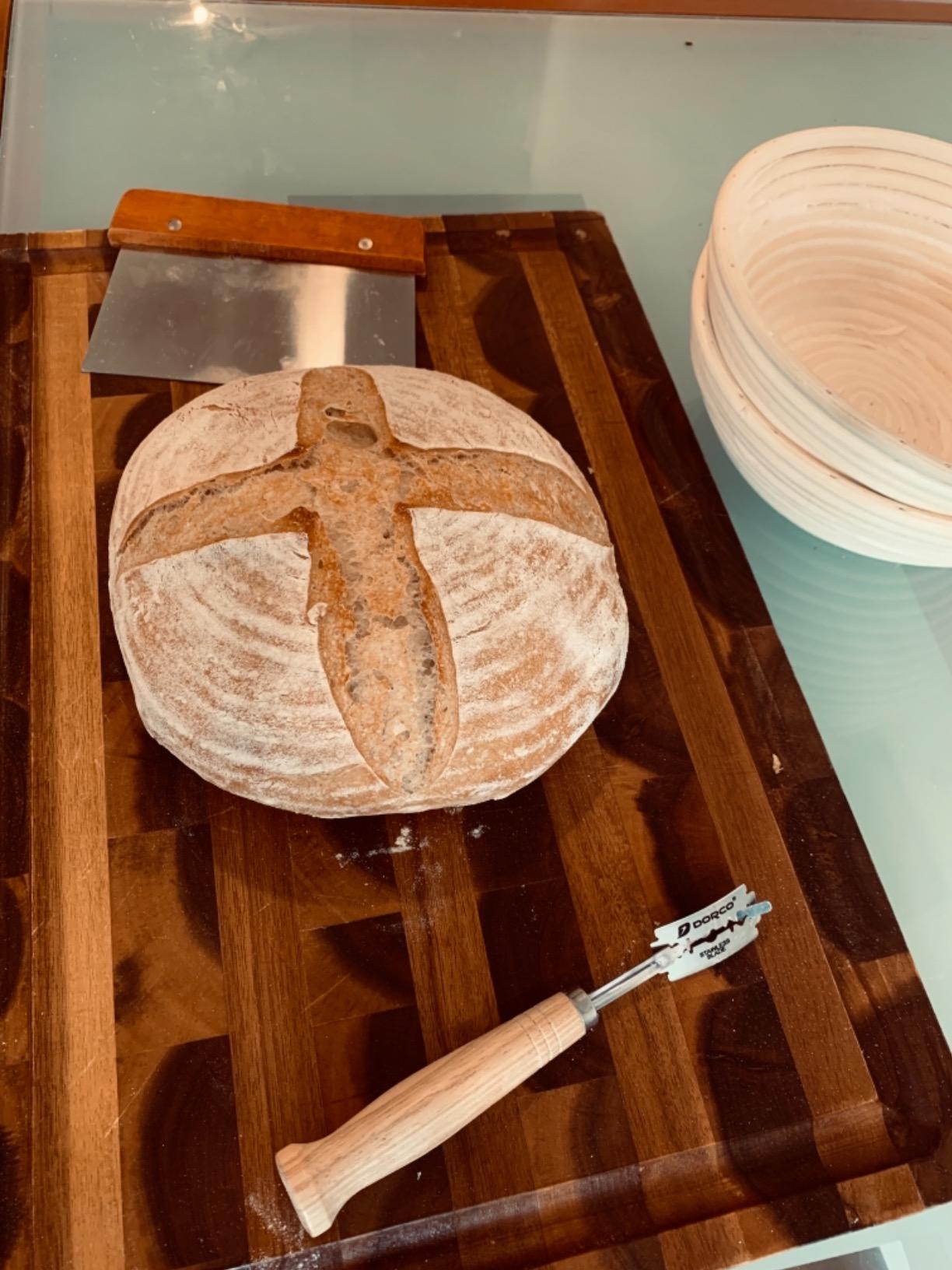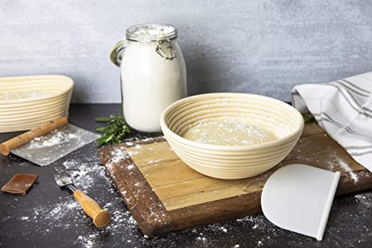 The Kook Sourdough Bread Proofing Set is an ideal choice for those looking to create fresh and delicious bread. Featuring two rattan banneton baskets, two basket covers, a metal scraper, a plastic scraper, a scoring lame, five blades, and a case, it is the perfect set to create those delectable treats. The set includes two banneton baskets ideal for bread making and can hold up to two pounds of dough. The baskets are crafted from 100% pure all-natural rattan and have smooth wooden tool handles made from pure natural beach wood. These banneton baskets are free of splinters and provide a great surface for bread making. A metal scraper and plastic scraper are also included in the set to scrape off excess dough quickly. The scoring lame allows you to easily cut through the dough and give it a decorative pattern before baking. It also comes with five spare blades and a case to store them all together in one place. The cleaning process is also quite simple. All you need to do is give it a quick hand rinse and then let it air dry for best results.